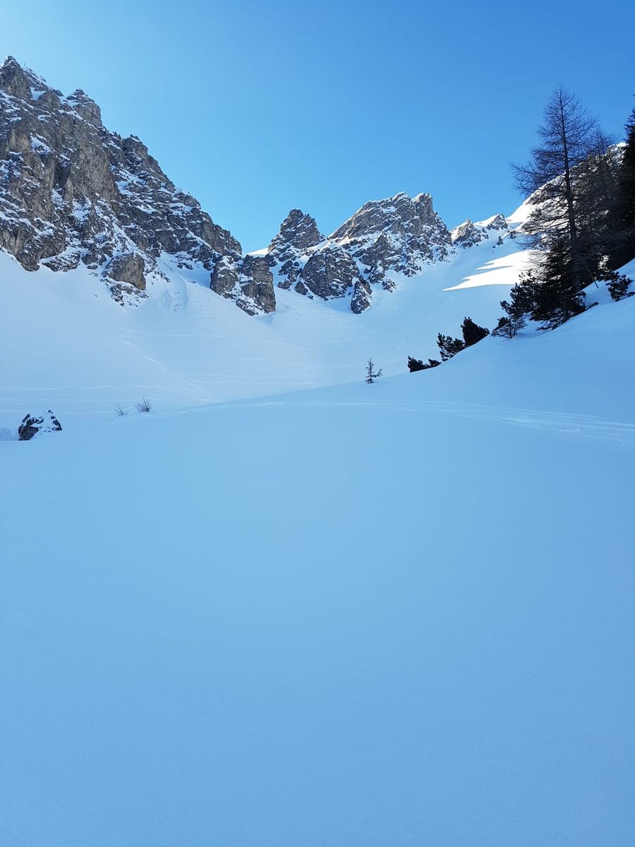 Der Wetterbericht prognostizierte für den 20.3. ideale Bedingungen. Für eine der Haustouren war's gerichtet. Seit letztem Wochenende war die Bergbahn geschlossen (endlich😆). Die Kunstschneeauflage war ab Talstation durchgehend geschlossen. Wahrscheinlich das letzte Mal. Wie bereits in anderen Berichten zu lesen, war im Freigelände vom Pulver, über Deckel und windgepresster Decke , auch vorzufinden. Arbfahrtstechnisch herausfordernd. Einmal hat's mich gelegt. Verwunderlich war, jedoch erfreulich, daß ich die erste Spur legte. Der LWD hatte für diese Region Stufe 2 festgelegt. Die Unterlage meiner Linie war durchgehend kompakt. Die letzten ca. 150m zum Gipfel waren ostseitig aper. Zum Gipfelfinale gab's noch die eine oder andere Wechte zu beachten. Die schattige Seite der Abfahrt war "gepulvert". Der Rest leicht aufgefirnt. Gegen 10 Uhr war ich wieder am PP.