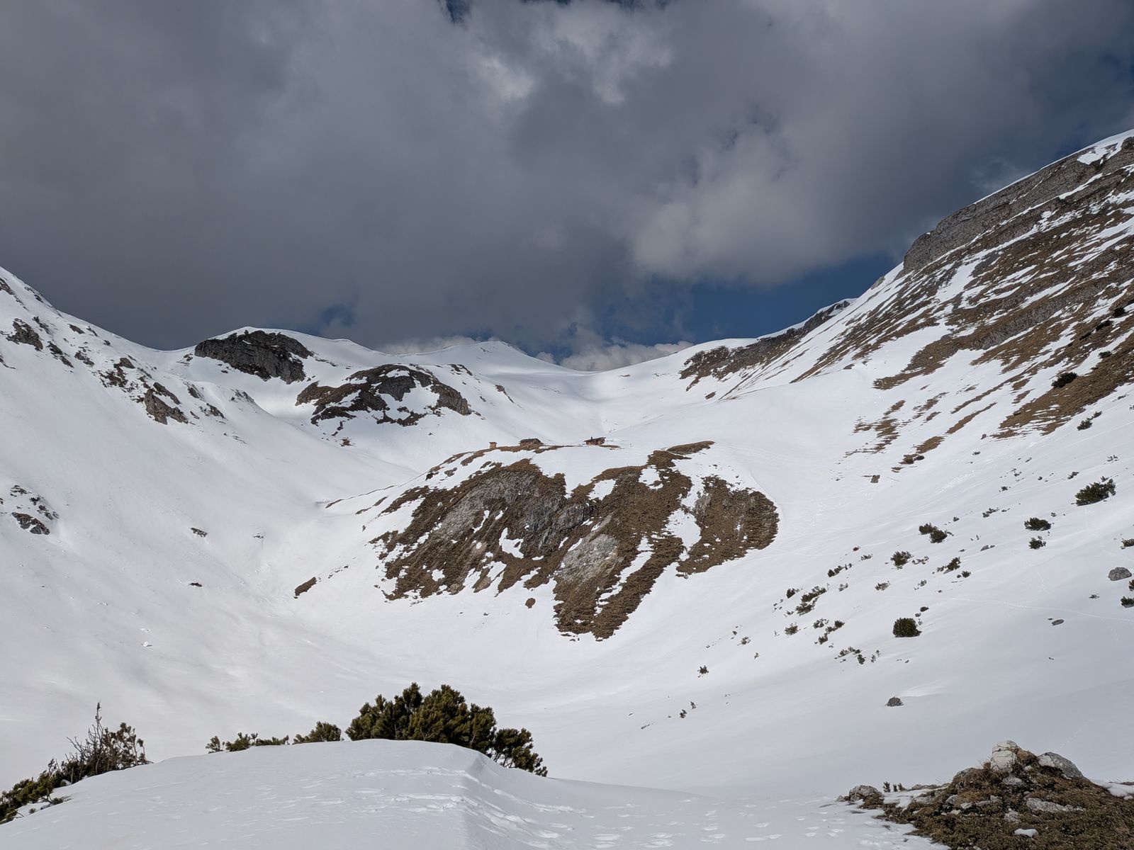 7/8: Deutlich mehr Schnee ab der Karschwelle bei 1800 Metern.