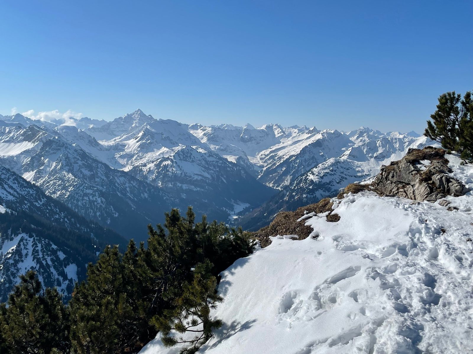 Start am Parkplatz der Wannenjochbahn (geschlossen) 5€ Parkgebühr --- 5 Minuten zu Fuß, dann steht man vor den Resten der Skipiste - durchgehend Schnee (Eis) bis zur Stuibenalm (7:45h Start). Dann noch die meiste Zeit im Schatten durch einen kurzen Latschenkamm bis zum Joch -- Pulverschnee (aber sehr zerfahren). Vom Joch mit wenig Schnee bis kurz vor den Gipfel dann die letzten 5 Minuten zu Fuß -- einige Skitourengeher sind gleich vom Joch aus gelaufen (ca 30min) - wenig Schnee auf der Gipfelabfahrt, aber es reicht ohne Steinkontakt. Keine Spuren zum Bscheißer vom Joch aus. Super Sicht und bestes Wetter im Allgäu - Übergang (zu Fuß) auf dem Sommerweg zum Zierleseck und Abfahrt von dort aus wurde von einigen gemacht. Sowieso sind wohl alle denkbaren Rinnen - vom Gipfel des Ponten Richtung Zierleseck, die Rinnen vom Bscheißer heute gefahren worden. Trotzdem war nicht viel los auf dem Ponten. Abfahrt um 12h - die eisigen Stellen waren da gut angefirnt bis zum Parkplatz und oben eben Pulverreste. Die meisten Skigebiete (bis auf den Lift am Oberjoch) waren geschlossen - und daher wenig los auf der Straße. Alles sehr entspannt und eine schöne Tour, bei guten Bedingungen für die Jahreszeit... Die schattige Skipiste hält noch eine Weile für Auf- und Abfahrt.