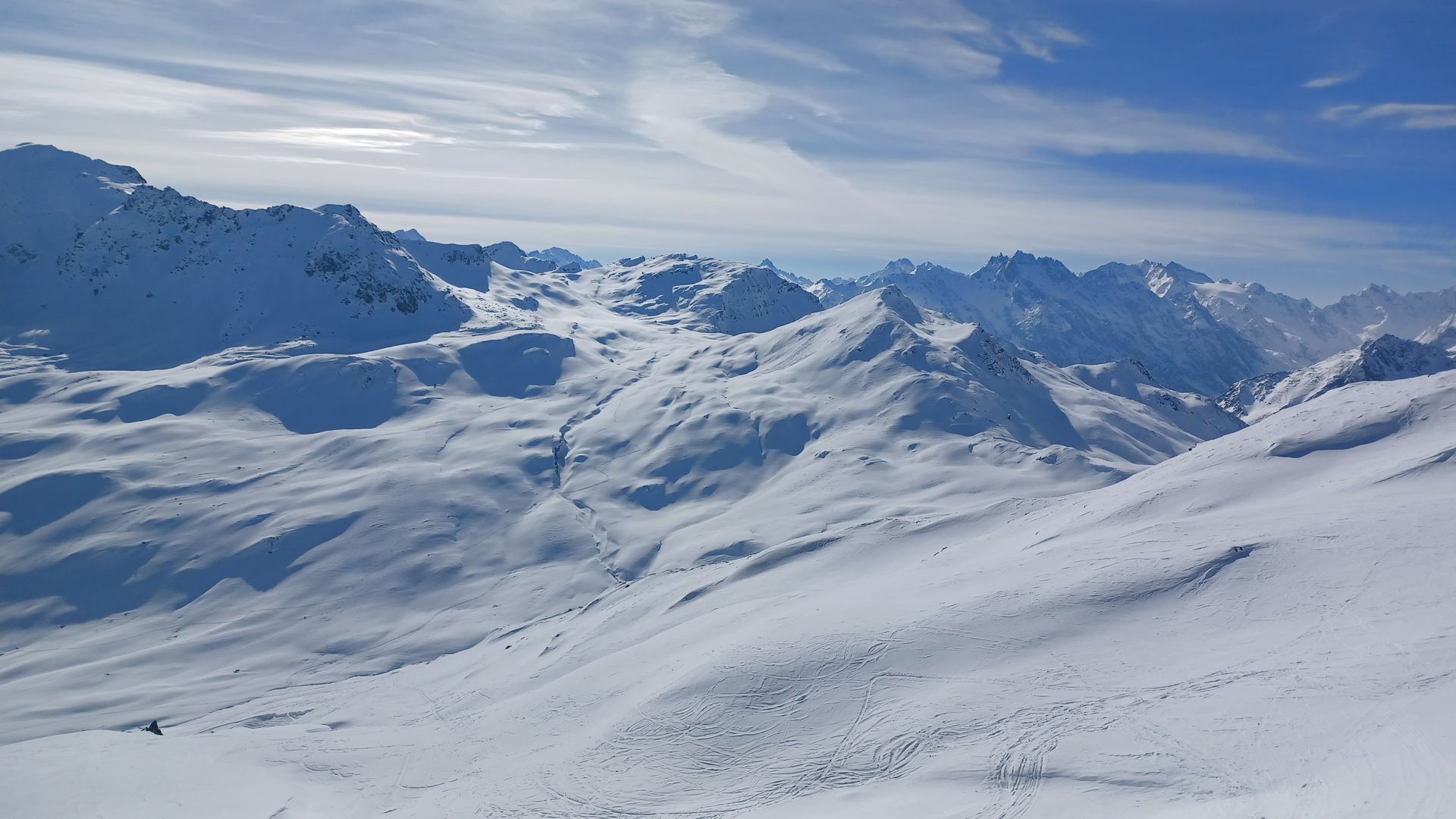 Zwischenhoch und halb Bivo war aufm Weg zum Piz Turba. An der Bergstation Mot Scalotta kurz umdisponiert (auf Massenandrang hatten wir keine Lust) und sind dann gleich die schönen Hänge hinunter zur Alp Tgavretga abgefahren und von dort aus zum Piz dal Sasc aufgestiegen.