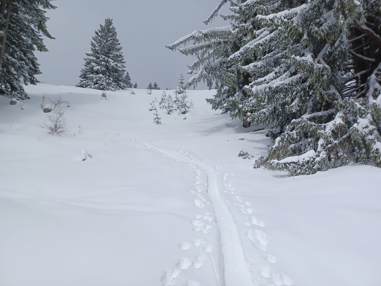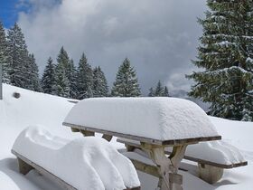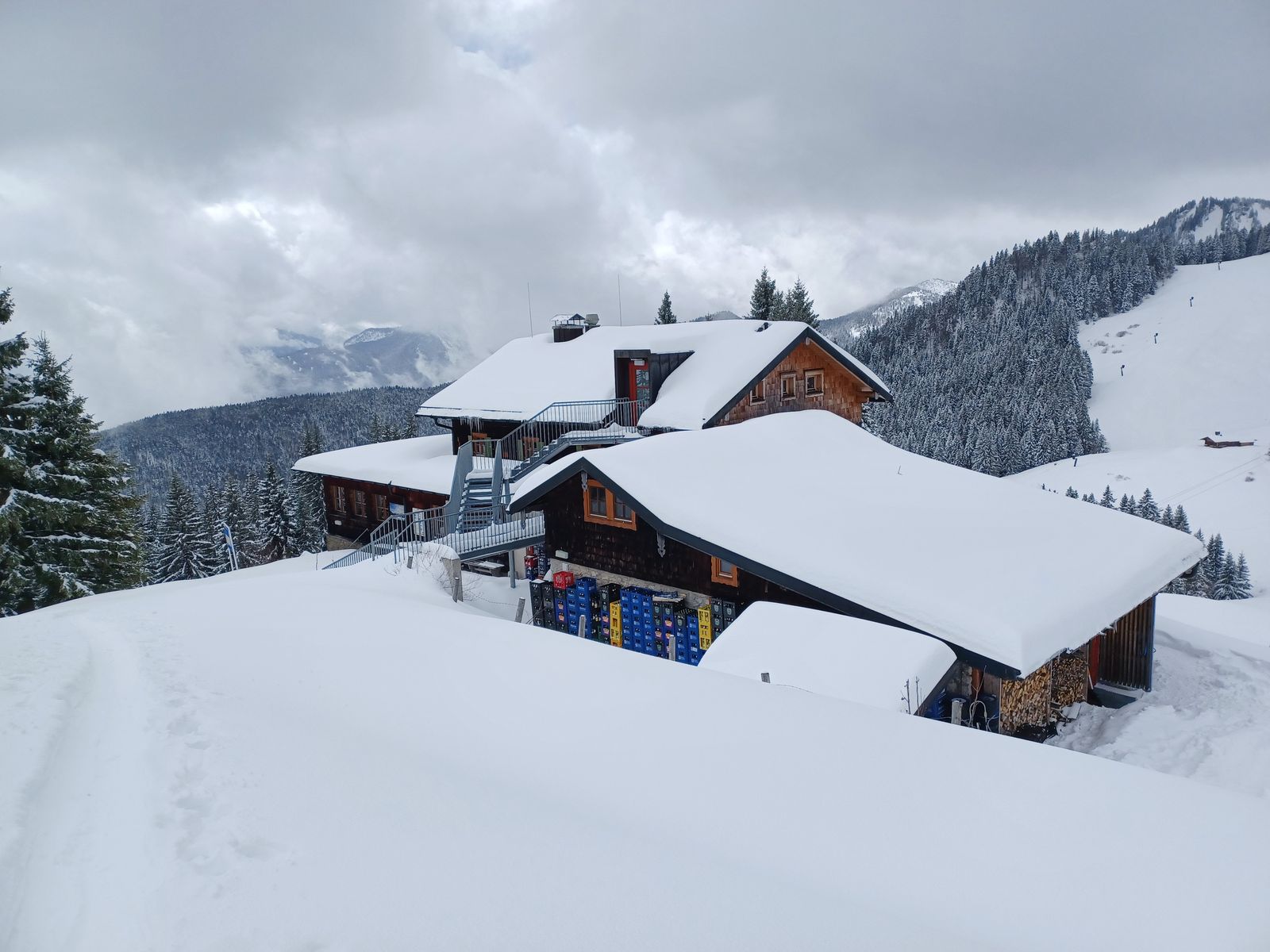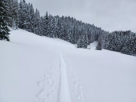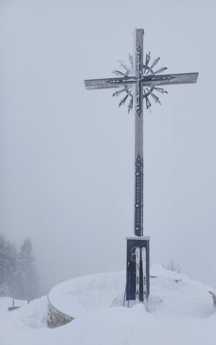 Heute Vormittag gabs selten gute Bedingungen am Brauneck. Kein Skibetrieb mehr, es läuft nur noch die Gondel. Am Start 20 cm Pappschnee, oberhalb 1100 m wird's pulvriger. Einsamer, hochwinterlicher Aufstieg über die Skitourenroute via Florihütte zum Gipfel. Ja, es hat richtig viel Schnee und natürlich genügend Platz für eigene Spuren. Wind war heute kein Thema und die Sicht war auch ganz ok.