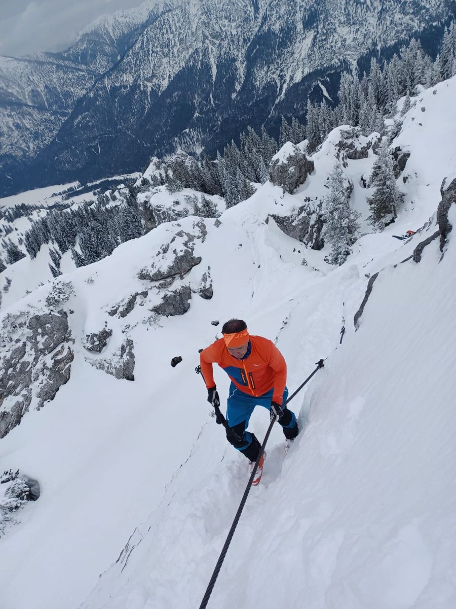 Verhältnisse: Ausgezeichnete Bedingungen heute am Teufel. Anstiegsvariante über Kühalm. Der steile Rücken wie auch der Grat sehr gut zu gehen. Gipfelanstieg problemlos (Stapfschnee - Seil schaut raus).