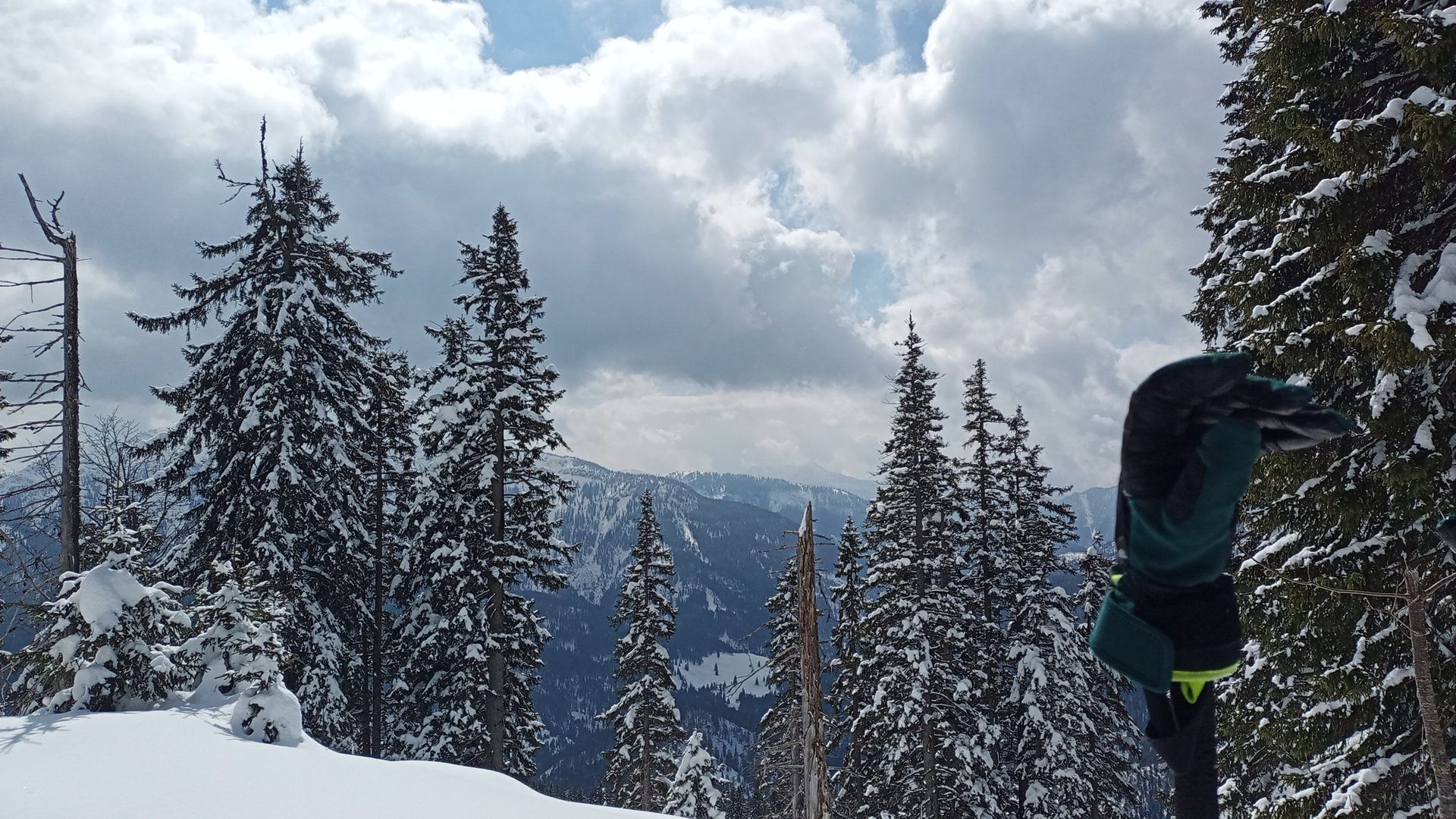 Wenn's nicht reinregnet, sollte das morgen noch ähnlich sein, weil ab dem späten Vormittag die Wolken reinzogen. Ab der Haushamer Alm trotzdem schwerer Schnee (bis unten fahrbar).