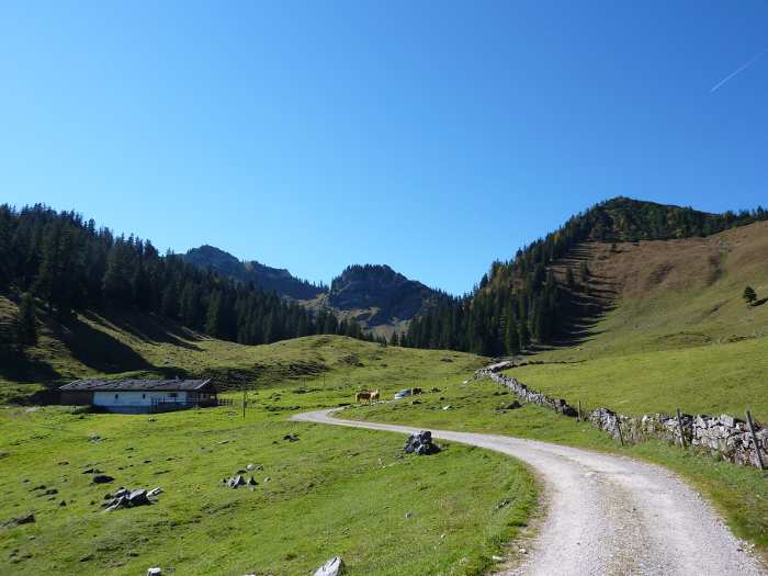 Almgebiet wieder steiler, Radl-Depot bei der Rainer-Alm.