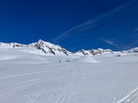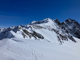 Der Rest ist dann unproblematisch. Heute waren im Gebiet scheinbar alle zum Taschachjoch unterwegs. Zum Taschach-Hochjoch ist der letzte Hang sehr steil, ist aber rein südseitig.
