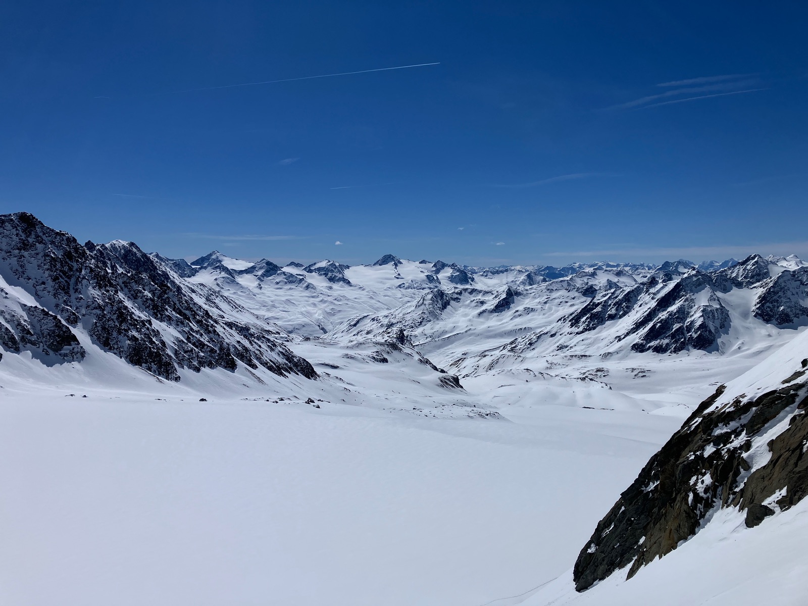- Und wie eigentlich immer im Venter Gebiet im Frühjahr: Gegangen werden die Hüttenzustiege den ganzen Tag, auch wenn es massiv warm wird. Wieviele mir heute noch im Aufstieg entgegen gekommen sind, obwohl ich für die heutigen Verhältnisse in meiner Abfahrt jedenfalls schon zu spät dran war ... Im besten Fall hat man nur schlechten Schnee, im ungünstigsten Fall entladen sich die Flanken oberhalb der Hüttenzustiege als Lawine (am kritischsten ist m.E. insoweit das Niedertal zur Martin-Busch-Hütte)