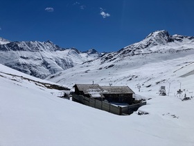 - Im Gebiet war heute der Schnee auch sonnseitig oberhalb ca. 2.500 m noch nicht voll umgewandelt. Das wird bis zu wirklich gutem Firn noch kalte Nächte brauchen (jetzt gerade ist es aber auch nicht ganz klar und noch recht warm). Die Sonneneinstrahlung dürfte südseitig an Tagen wie heute jedenfalls gereicht haben.