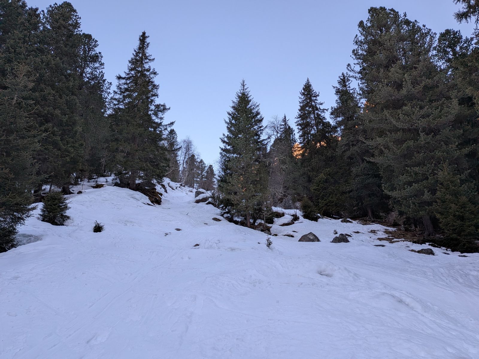 Lawinengefahr: Ganz gering, auch keine Bedrohung aus den Flanken.