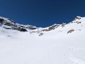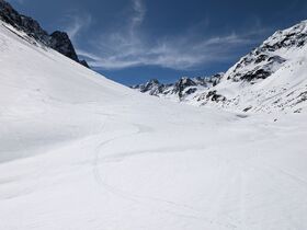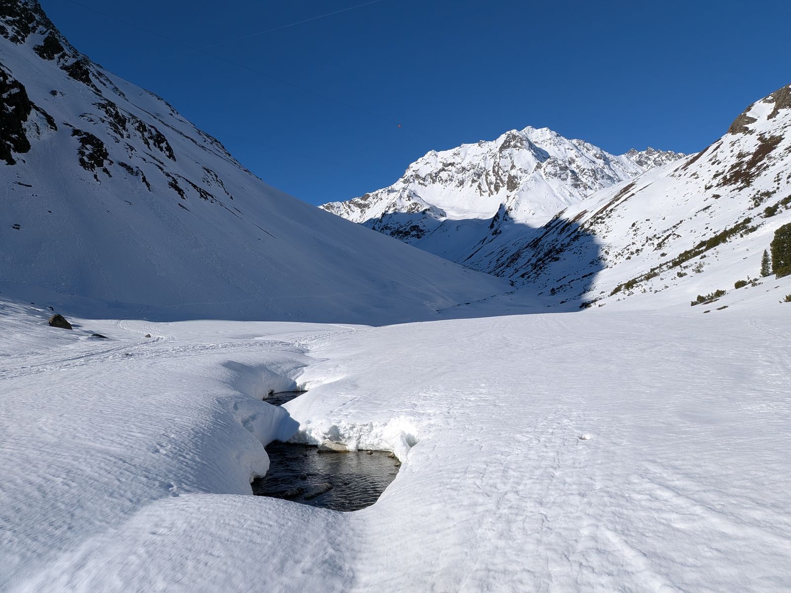 Anmerkung: Der Längentaler heißt nicht umsonst so, denn es zieht sich. Für die 1700 Hm darf man 4-5 Stunden veranschlagen. Mir gefällt die Tour landschaftlich sehr gut und ich mag auch die bei passendem Schnee gemütliche Abfahrt. Der Gletscher ist völlig harmlos, es braucht keine Ausrüstung.