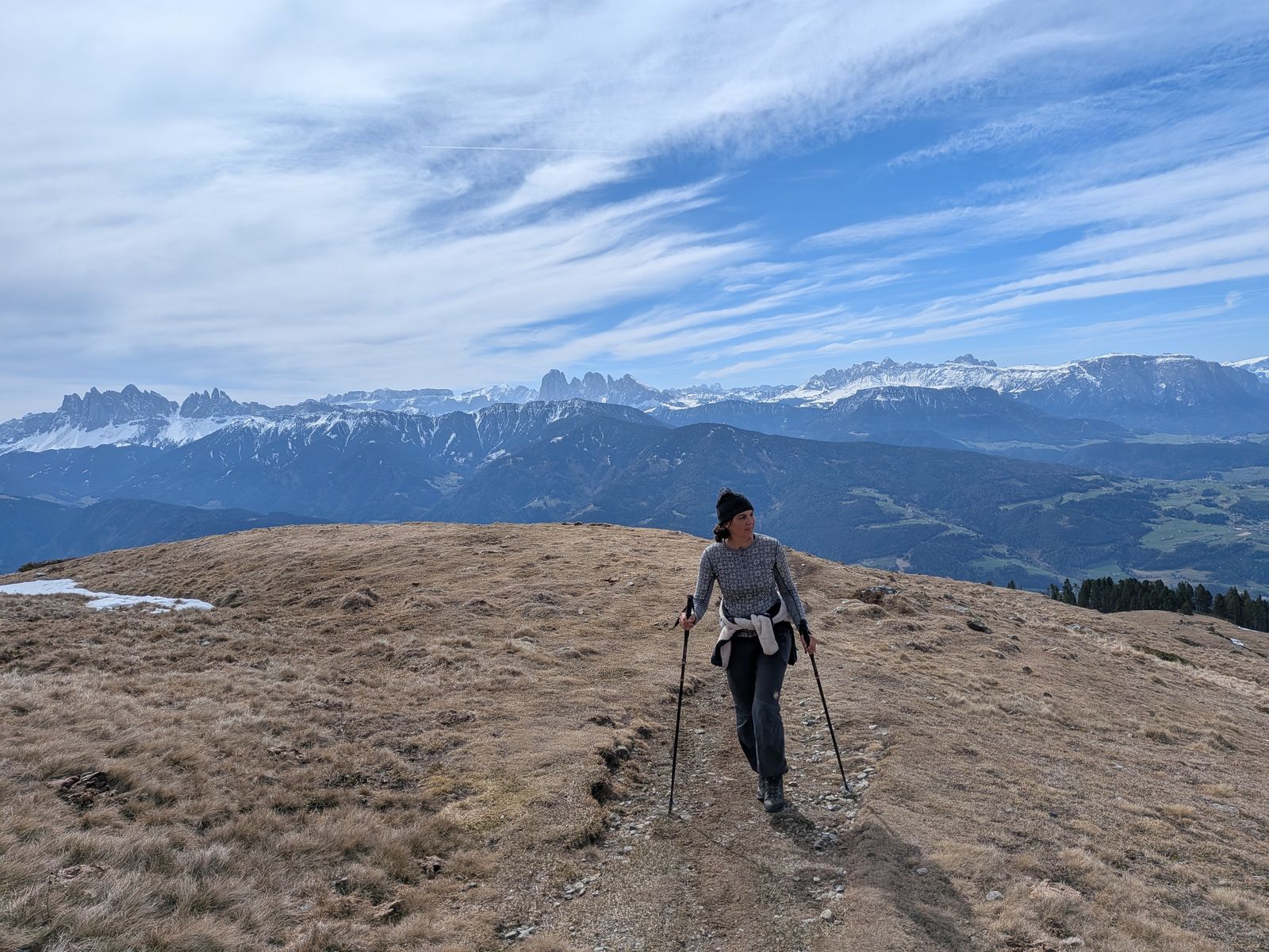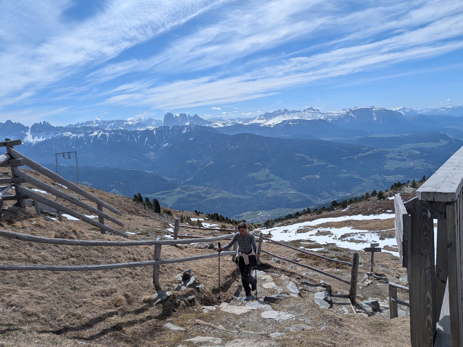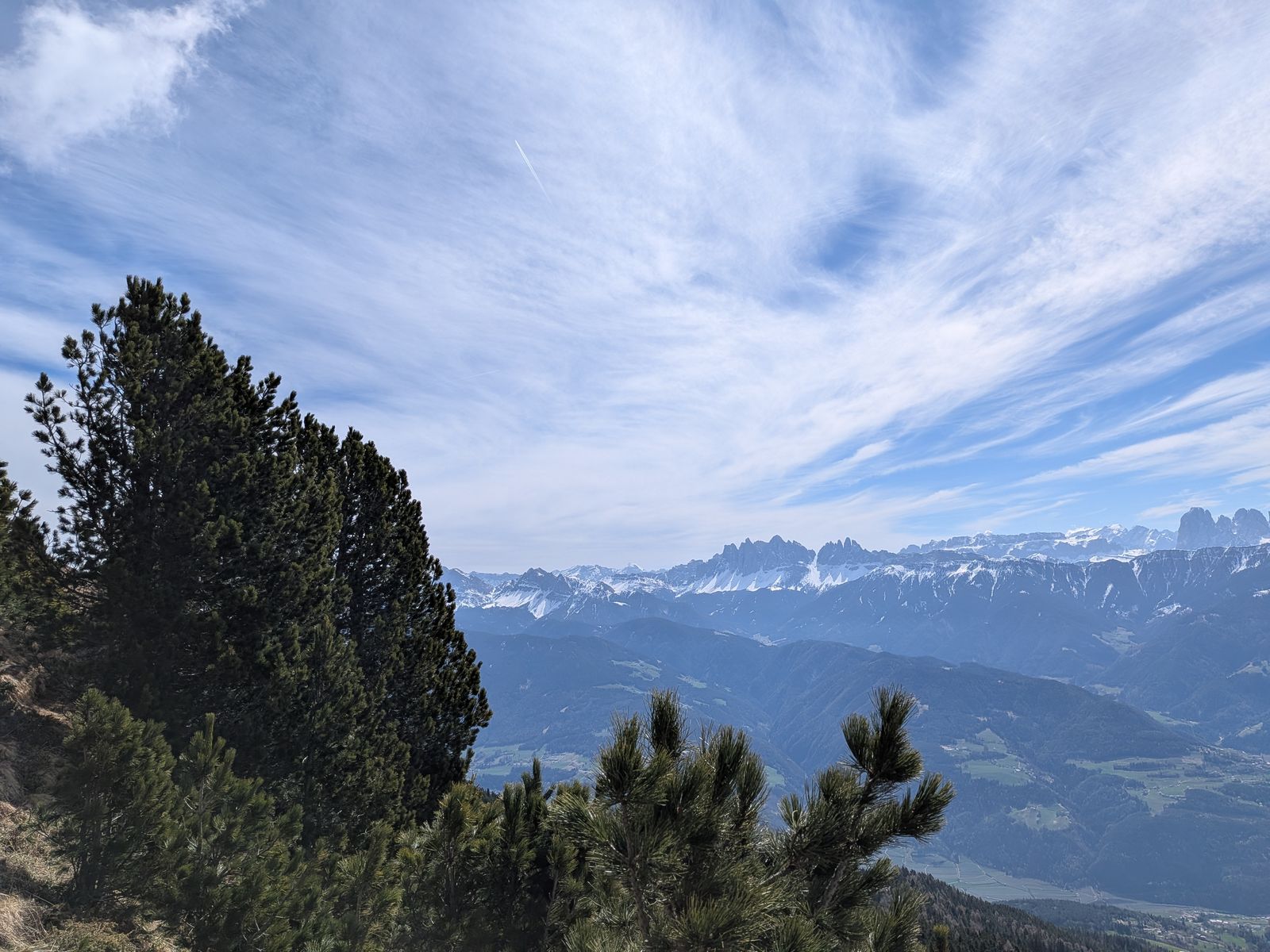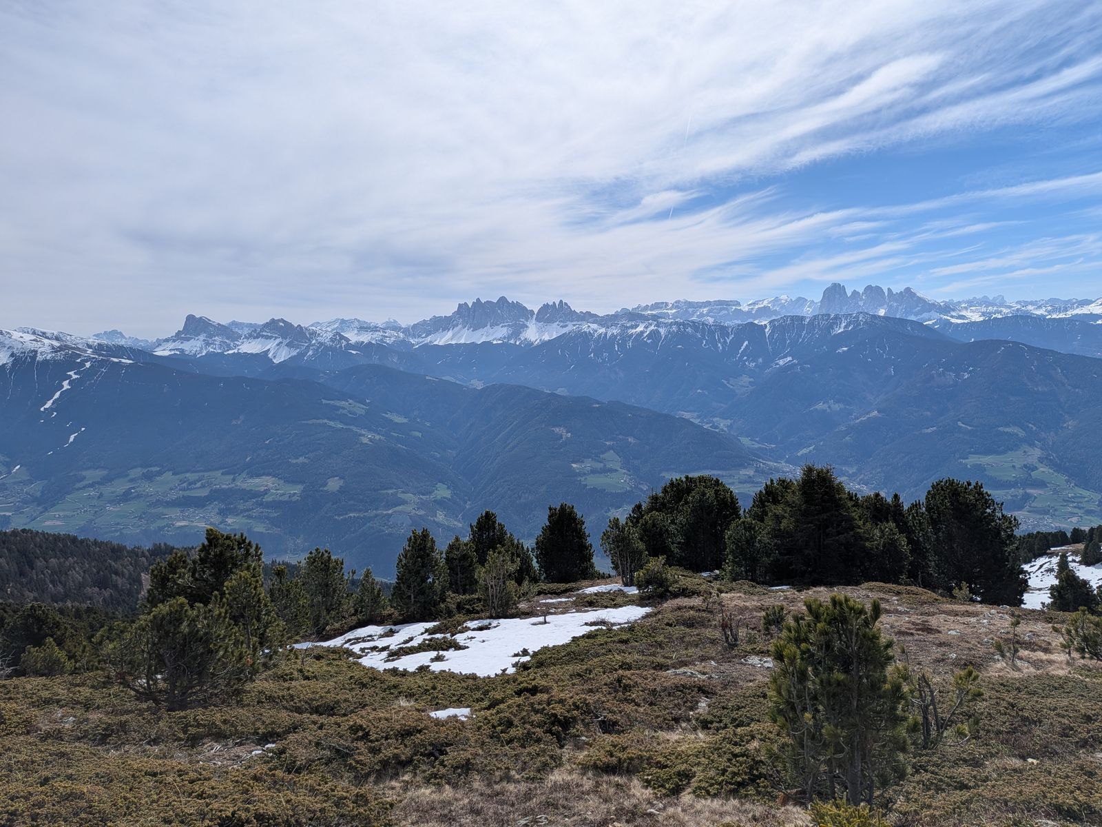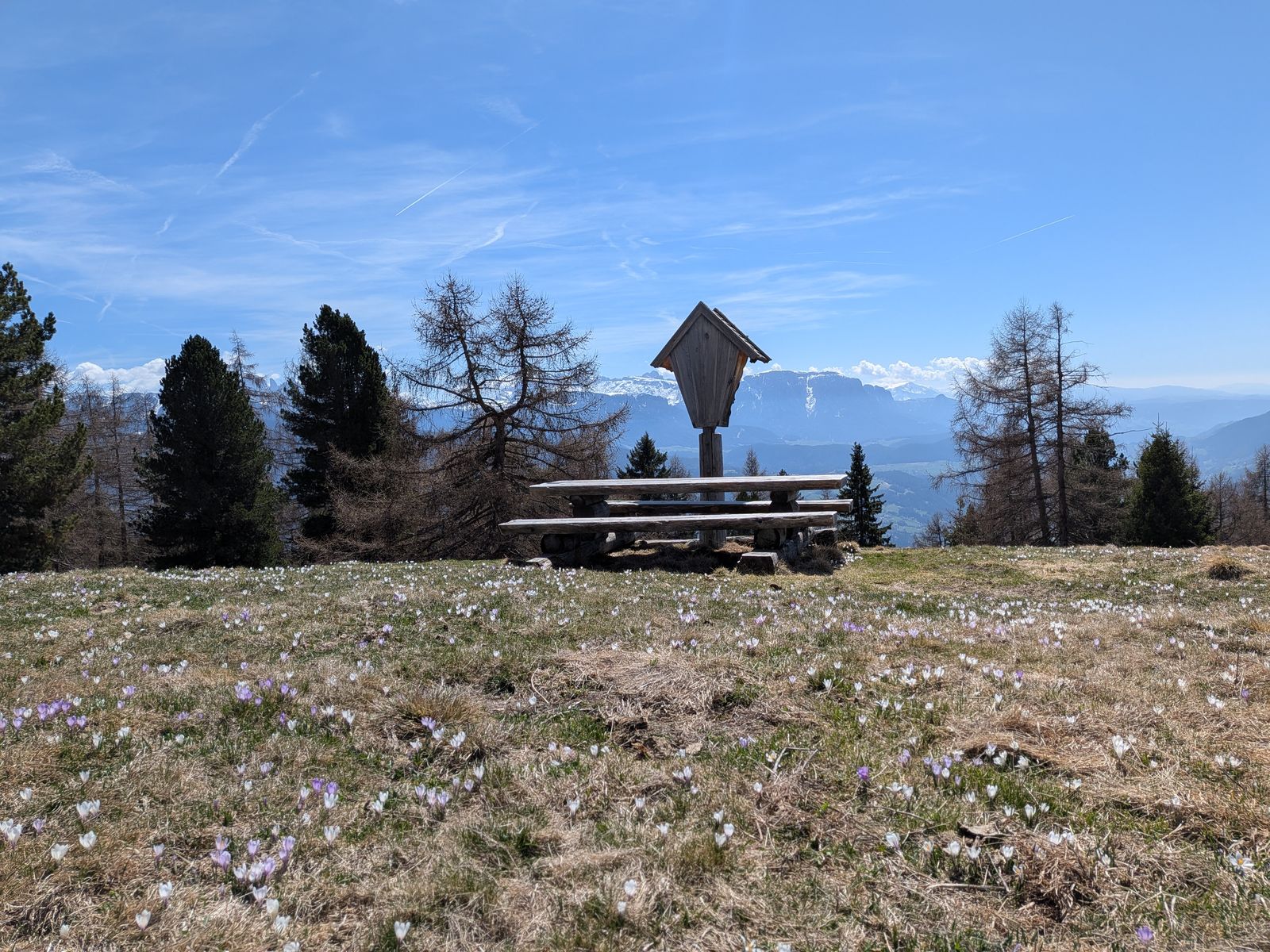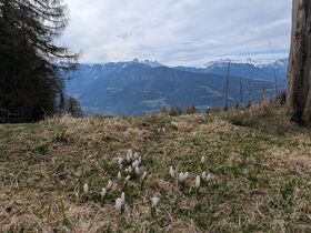 Wir sind über's Wochenende nach Südtirol gefahren und haben uns am Samstag mit Bekannten in Brixen getroffen. Da bot es sich an, mal in den Sarntalern vorbeizuschauen, wo ich bisher noch nie war. Ich hatte dafür die südseitige und daher komplett schneefreie Route vom Garner Wetterkreuz zur Radlseehütte ausgesucht. Hoch sind wir über den Steig Nummer 10, runter auf dem gleichen Weg, aber mit einer kleinen Variante über die Brugger Schupfe. Die Tour ist sehr einfach, landschaftlich aber wirklich schön mit einem tollen Blick auf die Dolomiten. Momentan ist gerade die Krokusblüte und ich übertreibe sicher nicht, wenn ich sage, dass hier momentan Milliarden der kleinen Kunstwerke zu sehen sind. Freilich würde es sich bei dieser Tour anbieten, noch die Königsangerspitze zu besteigen, aber das ist sich bei uns zeitlich nicht mehr ausgegangen, weil wir am Nachmittag ja mit unseren Bekannten verabredet waren. Nebenbei: Wir waren mit denen im Löwenhof in Vahrn - sehr zu empfehlen: hervorragende Pizza!