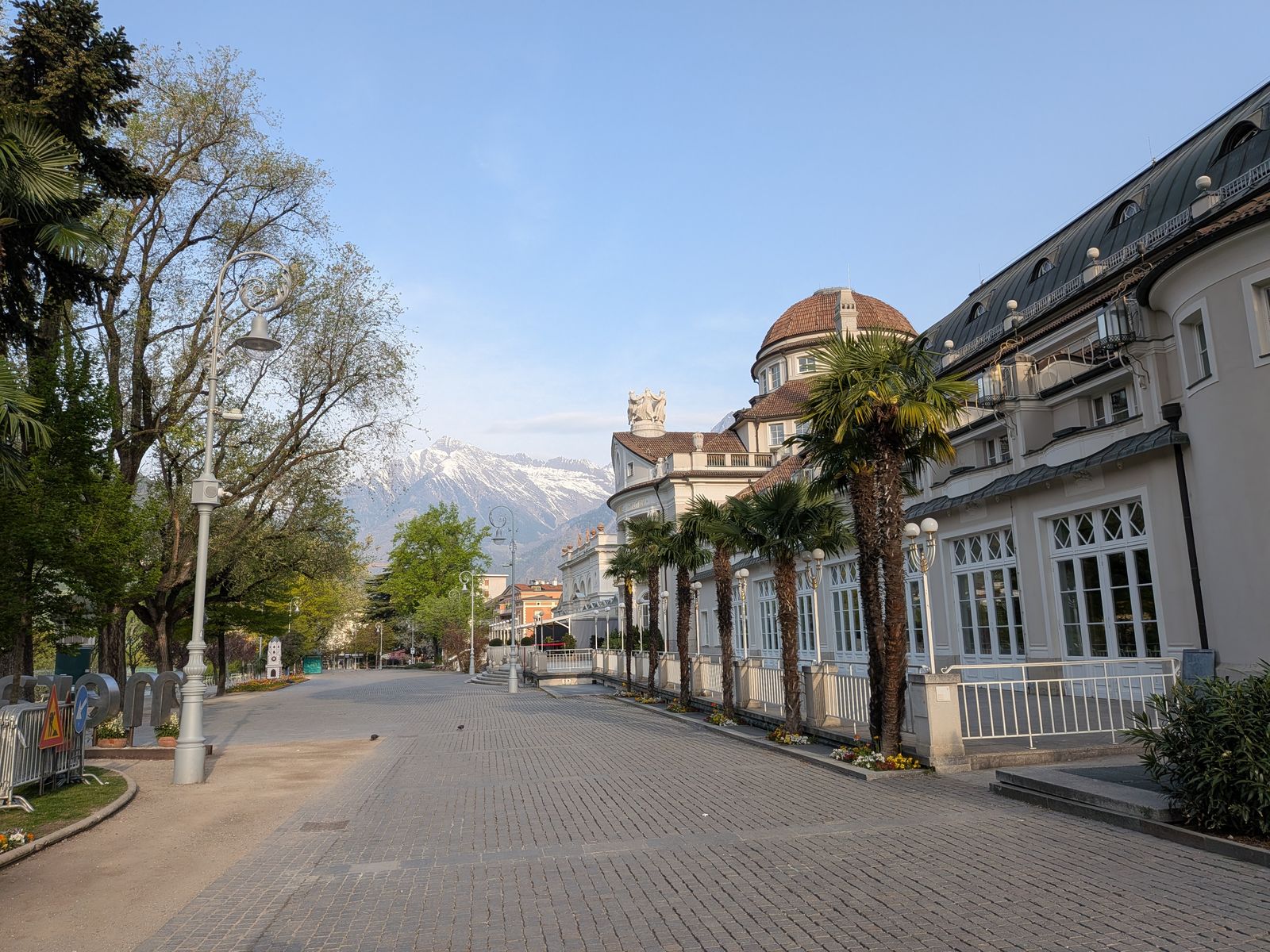Daniela und ich sind gestern Nacht noch Richtung Meran gefahren und haben da an einem schönen Platz im Auto übernachtet. Natürlich nicht an dem oben genannten Ausgangspunkt unserer Tour. Da wär's aktuell wohl sogar erlaubt, aber Großparkplatz am Bahnhof von Meran ist eher minder romantisch...