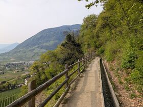 Route: Wer Meran und Umgebung kennt, weiß, dass es da unzählige Wege und Varianten gibt. Daher werde ich hier nur die markanten Wegmarken nennen: Meran - Tappeiner Weg - Algunder Waal - Schloss Tirol - Farmerkreuz - Tiroler Kreuz - Longfallhof - (oberer) Kuenser Waal - Traktormuseum - Spronser Bach - Passerweg - Meran.