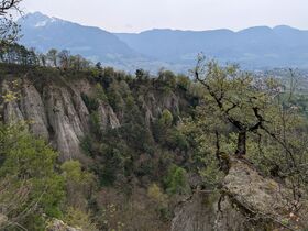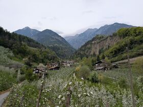 Momentan stehen die Apfelbäume (,wenn man dieses doch arg auf "DIN-Norm" getrimmte Gewächs einen Baum nennen will,) in voller Blüte, ebenso die Kirschen. Wunderschön anzuschauen! Man kommt bei der Tour übrigens auch bei den eindrucksvollen Erdpyramiden vorbei.