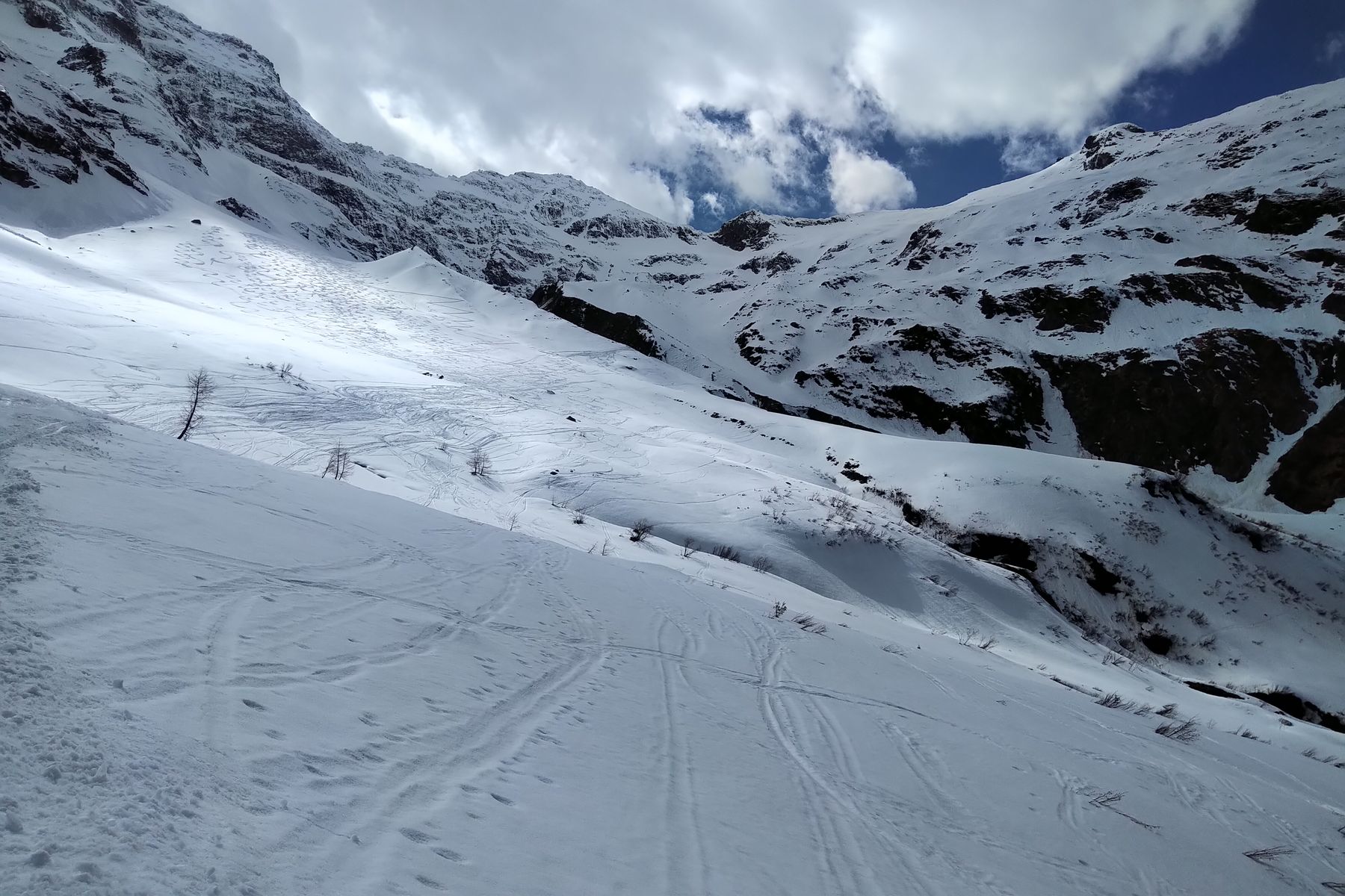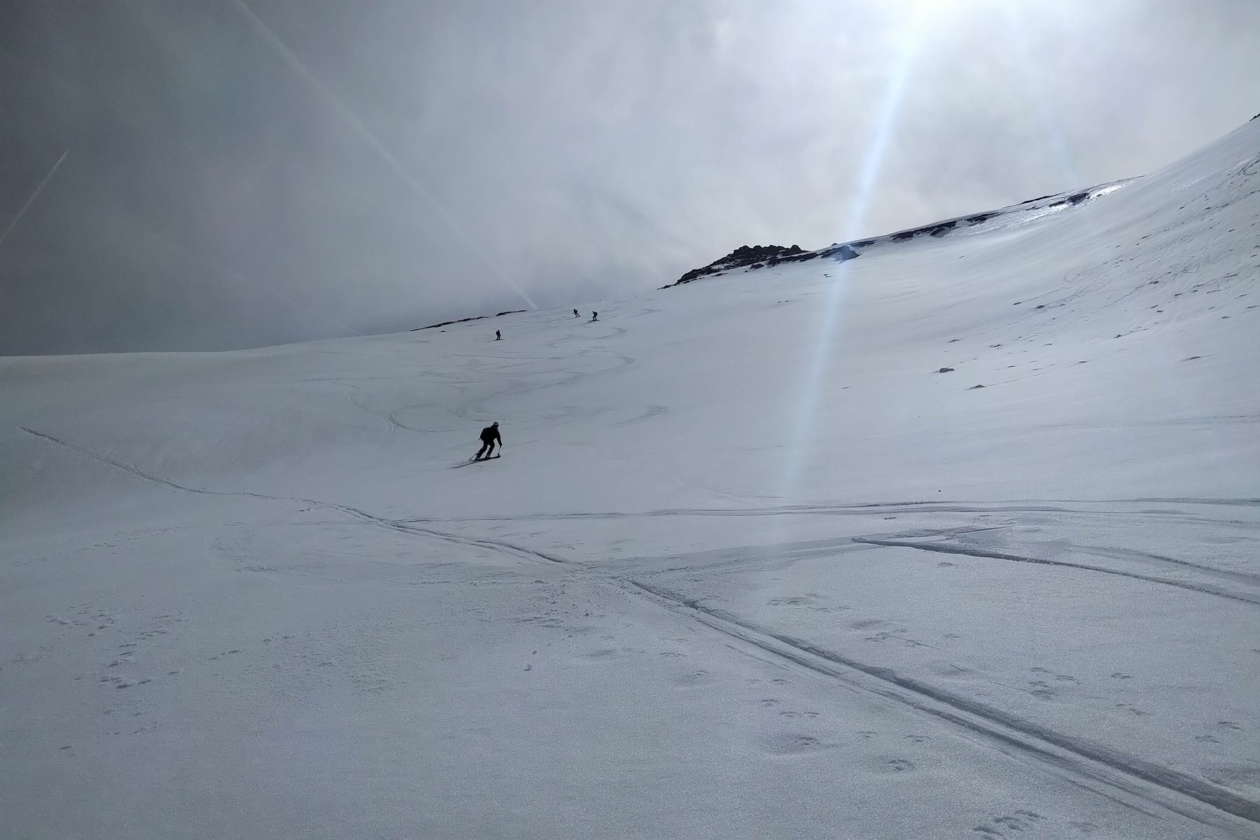 Schöner Firnhang im oberen Teil vom Silberkarl! Etwas später wär's noch besser gewesen, aber wie so oft wär's dann weiter unten zu weich geworden:
