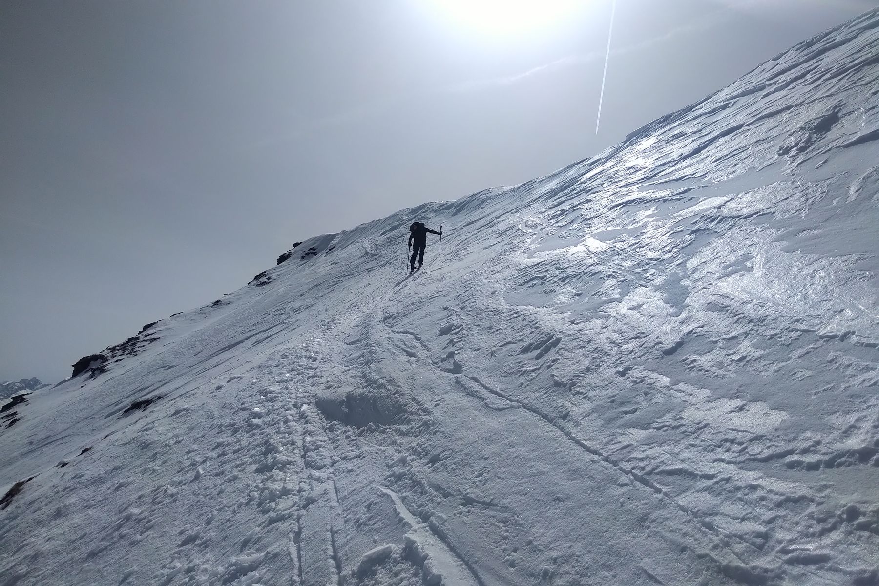 Der Gipfelhang zum Silberpfennig war auf der Nordseite gut mit Harscheisen zu gehen: