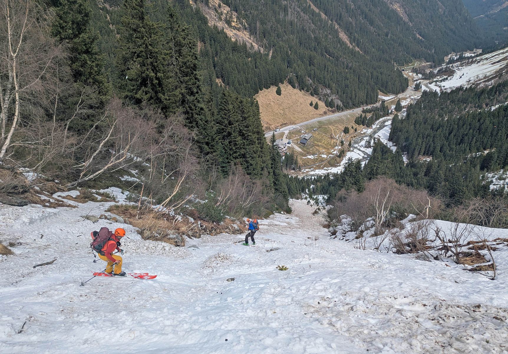 Darunter allerdings wieder tief durchnässter Schnee. Zudem muss man die Skier ein Stück lang entlang des Sommerwegs tragen. Ab der Sulzenaualm bis zur Grawaalm dann wieder gerade noch ausreichender Schnee.