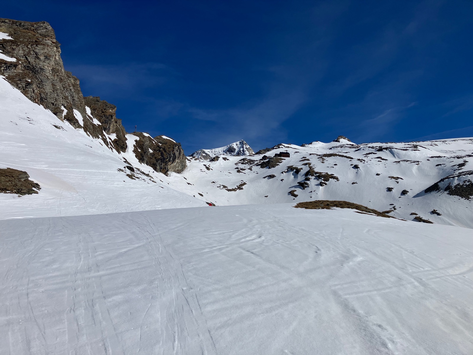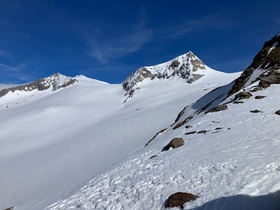 Bei der Abfahrt über das Rainerkess, etwas links der Bildmitte der Ab- bzw. Anstieg beim Übergang des Normalweges auf das Rainerkees: