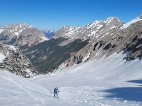 Nun Anstieg zur Seekar-Scharte. Abfahrt ins Neunerkar. Wieder schöne Firnabfahrt.