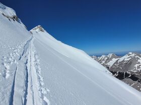 Stapfspur entlang der Überschreitung der 3 Ödkarspitzen. Hier die tageszeitliche Erwärmung auf der Südspitze beachten.