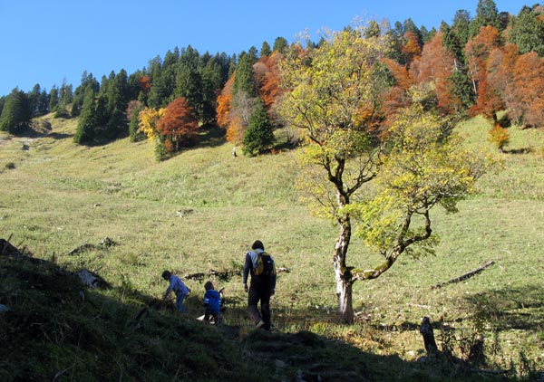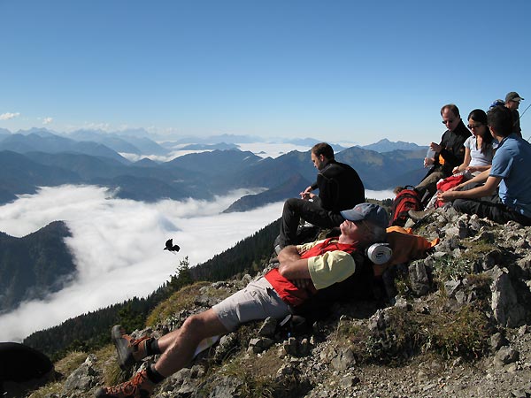 Tourenverhältnisse: Viele Passagen batzig und rutschig. Heute fantastische Fernsicht über dem Nebelmeer. Viele Leute, jedoch erträglich. Der Bergwald präsentiert sich derzeit von seiner schönsten herbstlichen Seite - Indian Summer!!!