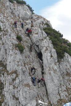 Gefahreneinschätzung: Bis auf den oben genannten Kamin zum Buchstein einfache bis mittlere Tour. Die steileren Stellen sehr gut mit Drahtseilen ausgestattet. Im Schneematsch kanns etwas rutschig werden.