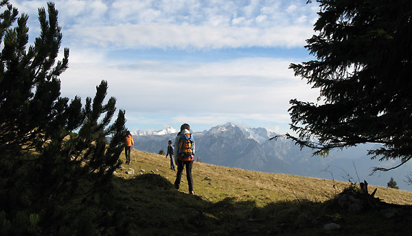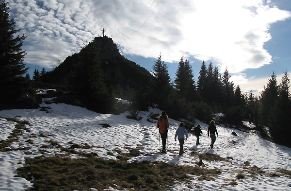 Tourenverhältnisse: Überwiegend schneefrei, nur im Gipfelbereich etwas Schnee. Auf den kleinen Wegen und vorallem über die Wiesen recht batzige Wegverhältnisse. Wetter: überwiegend sonnig mit Schleierwolken, warm, nur am Gipfel etwas Wind und kühler.