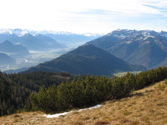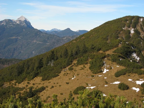 Tourenverhältnisse: bis zur Jocheralm Wege trocken, danach auch batzige Abschnitte (kaum Schnee); vom Heuberg zum Plessenberg und weiter zum Kienberg problemlos. Auch der anfangs nordseitige Abstieg vom Kienberg in Richtung Kreuthalm war gut zu gehen (nur wenige Schneeabschnitte) und kaum Batz.