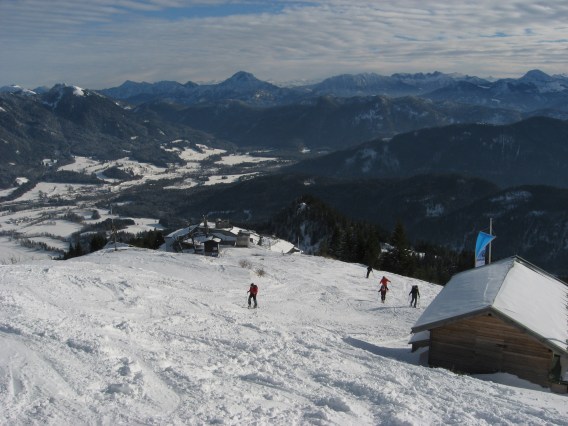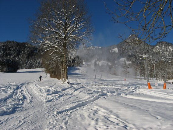Tourenverhältnisse: Aufgestiegen bin ich die übliche Tourenaufstiegsroute links der Familienabfahrt über die Florihütte in traumhafter Landschaft (super Bedingungen). Abgefahren bin ich natürlich die Piste (3: Familienabfahrt), die - von ein paar Höhenmetern ziemlich am Anfang abgesehen - in einem Top-Zustand war (ich weiß nicht, wo die eisige Piste in Richtung Wegscheid sein soll [siehe Beitrag vorher]). Die Piste war zwar schon zerfahren (lockerer Schnee). Schneekanonen in Betrieb habe ich auch keine gesehen (außer an der flachen Draxlhangpiste - aber die stören ja nicht). Allerdings haben mir andere Tourler berichtet, dass beim Garland-Aufstieg (ab Kabinenbahn-Talstation, nicht Wegscheid!) alle Schneekanonen in Betrieb waren und so der Aufstieg kein Genuss war (feucht und sehr laut).