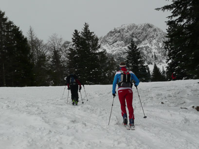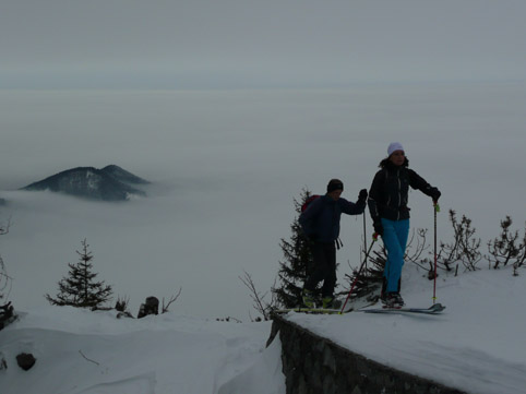 Tourenverhältnisse: Genug Schnee ab dem Parkplatz. Unten etwas dünn, aber Piste wurde schon mal gewalzt, ist gut eingefahren. Oben in nebem dem Pistenbereich bis zu 70 cm Tiefschnee - super Pulver! Noch kein Pistenbetrieb. An wenigen Stellen der 5 km langen Abfahrt (ca. 900 Hm) schauen ein paar Steinchen raus, die aber gut umkurvt werden können - ich hatte heute keinen Belagschaden. Derzeit noch kein Pistenbetrieb, heute Vormittag ca. 40 Tourengeher unterwegs. Der beschilderte Tourengeheraufstieg über den Reitweg ist gespurt.