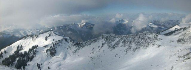 Tourenverhältnisse: Auch hier nicht zu viel Schnee, so dass wir uns heute wieder für eine Schneeschuh-Reibn Huben - Schreckalm (entlang des Sommerweges) - Mühlhörndl - Geigelstein - Priener Hütte - Huben entschieden haben. Beim Aufstieg waren wir fast alleine unterwegs, am Gipfel windstill und Sonne. Hat sich gelohnt!