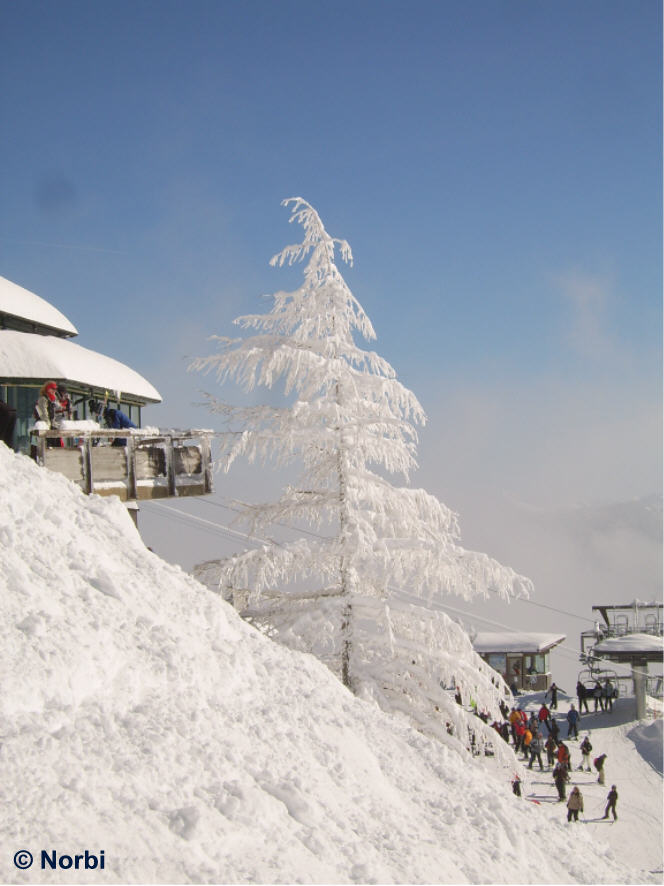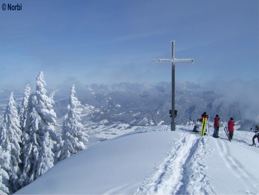 enorm viel Schnee; Sonnig, aber trotzdem frisch, Mittags der Gipfelbereich im Nebel; durch die Sonneneinstrahlung ist der Schnee schon etwas "kränklich"