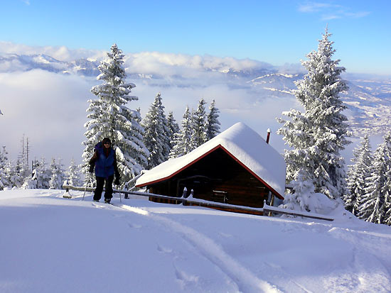 11.12.2010 Wertacher Hörnle (1695 m), ab Mittag Aufhellungen aber sehr starker Sturm. Die Hänge sind kpl. freigeblasen, am Waldrand entlang kommt man aber ganz gut runter. Eher mäßiges Vergnügen. Wird nach dem gestrigen Neuschneefall wahrscheinlich besser sein, aber mit öfterem Bodenkontakt wird sicherlich zu rechnen sein.