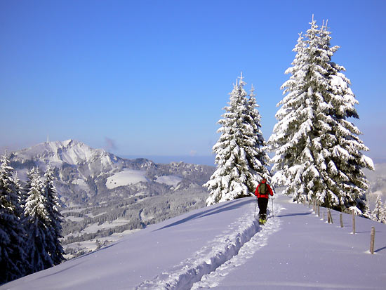 13.12.2010 Sonnenkopf (1712 m) von Hinang bei Sonthofen aus, über Nacht ca. 30 bis 40 cm Neuschnee, der ohne Wind gefallen ist. Ab Mittag kam die Sonne durch und dann war es ein absolutes Wintermärchen mit unverspurtem Traumpowder.