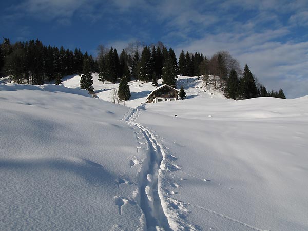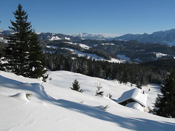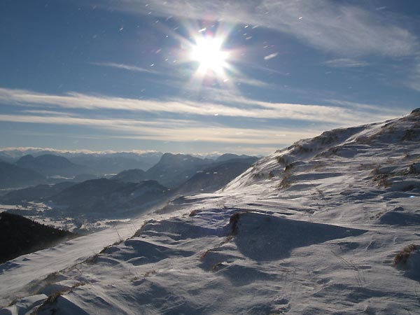 Sonstiges: War ganz alleine unterwegs - sehr einsame Route. Ausgangspunkt ist nicht oben an den Sommerparkplätzen (Straße nicht geräumt - ein Einheimischer sagte mir: nie geräumt) - ein Parkplatz in der nähe eines vernünftigen Ausgangspunktes war nur schwer zu finden. Anfahrt: Kettenpflicht, bzw. Allrad mit Winterreifen.