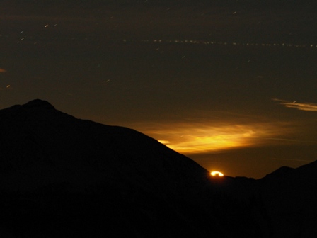 Tölzer Hütte mit Mond dahinter