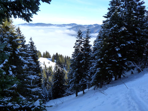 Sonstiges: Tourengeherverbot auf den präparierten Pisten am Braneck seit ca. 2 Wochen. Kein Problem bei dieser Route: rechts am Weltcuphang vorbei über Wiesen und lichten Wald, insgesamt verläuft die gesamte /gespurte) Route deutlich rechts vom Skigebiet (etwas Richtung Längental). Wir waren auf diesem Anstieg allein. Ansonsten zeigt das Tourengeherverbot sichtbare Wirkung.