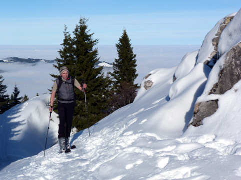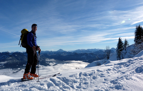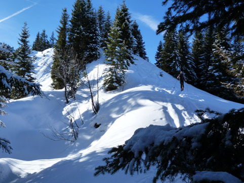 Tourenverhältnisse: verdammt wenig Schnee! (deshalb haben wir heute auf eine "richtige" Skitour verzichtet) - nordseitig selbst in 1500 m noch leichter Harschdeckel. Abfahrt via Piste/Garland problemlos