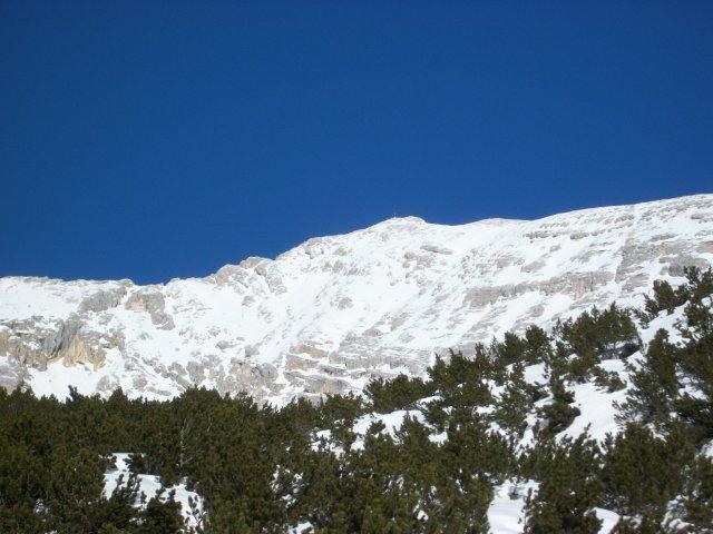 Tourenverhältnisse: Ab Parkplatz Aufstieg mit Ski möglich. In der Früh feste, gute Spur bis zur Pleisenhütte, haben durch den Wald ein bißerl abgekürzt. Danach bis zum Gipfel überraschend viel Schnee in der Latschenzone, ebenso an dem steileren Hang hin zum Gipfelgrat, am Südwestrücken etwas mager, aber nur die letzten Meter zu Fuß zum Gipfel. Abfahrt mit viel Felskontakt im oberen Bereich, pistenmäßig eingefahren in der Latschenzone bis zur Hütte und Sulz am Nachmittag obi bis zum Parkplatz.