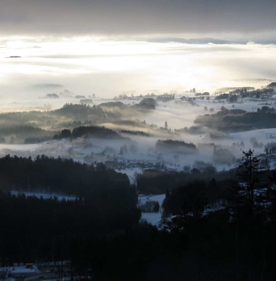 Nach der Rast war das Wetter besser und nach dem erneuten Aufstieg zum Zwiesel und der Abfahrt zum Parkplatz gab es doch noch einen schönen Blick auf den unteren Bayerischen Wald.
