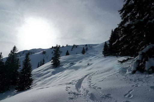 - mit Schneeschuhen ziemlich mühsame "Wühlerei", auch mit den Tellern an den Füssen ist man tw. tief eingesunken; super Wadl-Training ![]()