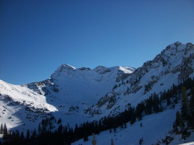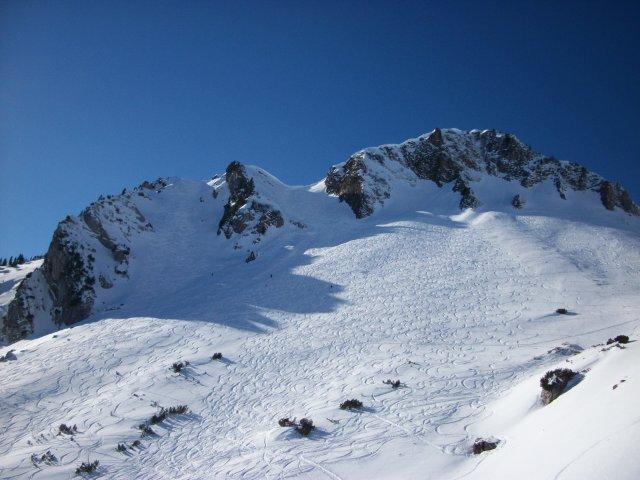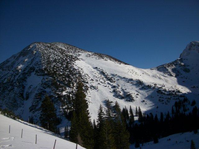 Tourenverhältnisse: Über den Lämpersberg zur Rotwand, Rotwandgipfelhang wie erwartet stark zerfahren. Bin dann weiter übers Rotwandhaus und die Kümpflscharte zum Auerspitz, Abfahrt zur Großtiefentalm angenehm, (zerfahrener) Pulver. Von dort aus noch den Hochmiesing mitgenommen, die westseitige Abfahrt zur Kleintiefentalalm durch den Latschenhang ist machbar, aber nicht wirklich zu empfehlen, könnt mehr Schnee haben. Übers Taubensteinhaus und Piste bequem zurück zum Spitzingsee.
