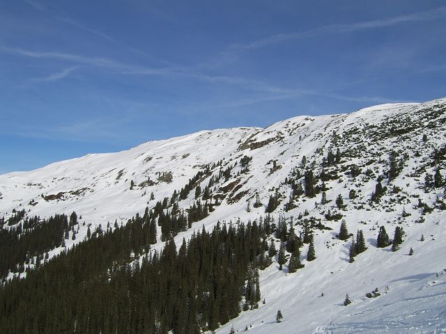 Tourenverhältnisse: ab/bis P mit Ski; zuerst über Forststraße, dann durch einen Waldgürtel: hier im Aufstieg problemlos, bei der Abfahrt schon ziemliche Hackelei; im darauf folgendem Almgelände bis zum Schneegrubenschartl gute bis sehr gute Schneeverhältnise; im weiteren Verlauf auf dem NO-Rücken stellenweise hart und windgepresster Schnee
