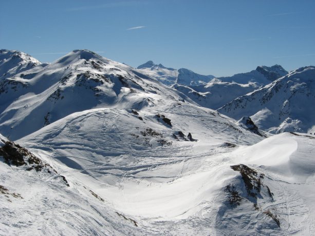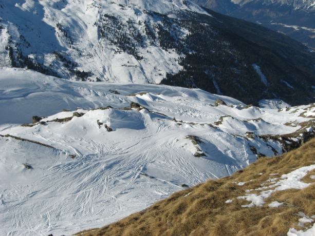 Abfahrt insgesamt viel windgepresster Schnee (verspurt), teils auch pistenartig eingefahren, auch etwas gesetzter Pulver, kein wirklicher Bruchharsch und auch keine starke Durchfeuchtung. Schneemenge an den Hängen ausreichend, könnte jedoch mehr sein (hatte aber keinen Steinkontakt).