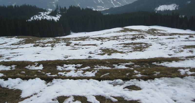 Die Wiesen um die Falkenmoosalm sind auch schon ziemlich aper (siehe Bild) und mit dem angesagten Föhn dürften noch größere Flächen grün werden.