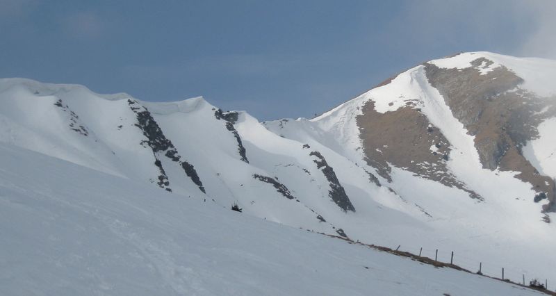Während des Anstiegs gab es leichten Nieselregen, dann etwas Schnee und am Ende dann doch die Sonne. Auf den letzten 300 Hm gab es sogar frischen Schnee (ca. 0.1 cm), aber der Skispass hält sich derzeit in Grenzen.