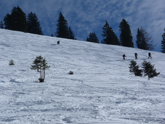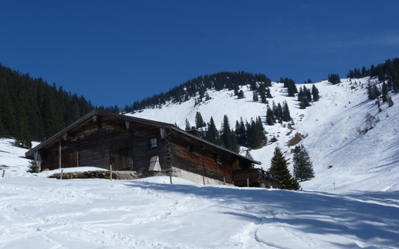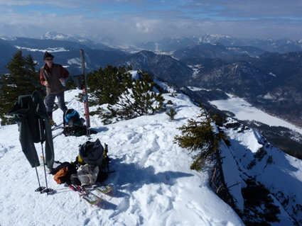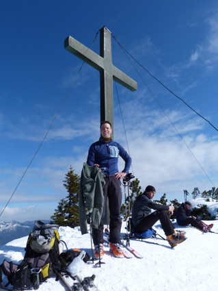 Tourenverhältnisse: Der schöne Gipfelhang ist je nach Exposition mal firnig, mal pulvrig. Aufstieg via Zigeunermarterl (Piste, sollte man nur am frühen Vormittag machen) zur Winkelmoosalm. Abfahrt ab der Dürrnbachalm auf der "klassischen" Tourengeher-Aufstiegsroute oberhalb des Bachs - auch das geht gut (paar Hubbel sind drin), Abfahrt problemlos bis zum Parkplatz. Insgesamt gute Verhältnisse!