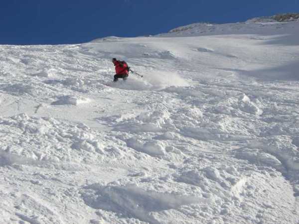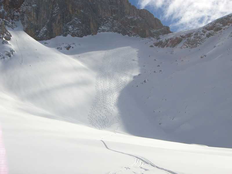 Tourenverhältnisse: von Hintertal Richtung Seehorn, bei Kalbrunnalm geradeaus weiter zum Diesbachstausee (elendes Auf und Ab) weiter zur Materialseilbahn des Ingolstädter Haus, über den Sommerweg zu diesem hinauf (nur bei sicherer Lawinenlage), dann ums Diesbacheck und herrliche Abfahrt in die Hochwies (Bild1), wiederauffellen und rauf zur Kematenschneid und links zum Seehorn. Abfahrt durch den Graben (schon etwas zerfahren aber immer noch pulvrig, Bild 3) zurück zum Parkplatz.