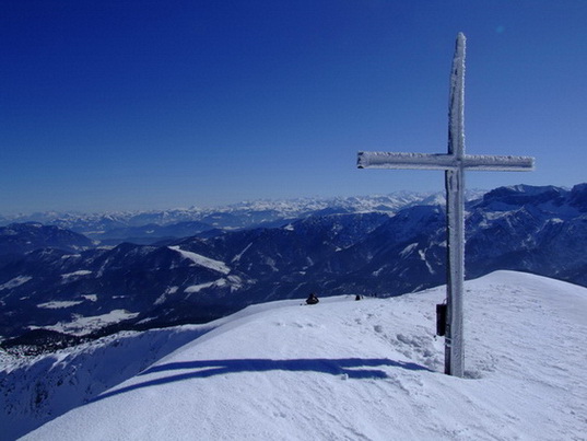 Zur Kögl-Alm entweder auf der Forststrasse (nahezu geschlossenene Schneedecke) oder über das Steiglein (zu ungefähr gleichen Teilen schneebedeckt und aper). Oberhalb der Alm dann ständiger Wechsel zwischen Neuschnee (10-15cm auf nacktem Boden; in Windschneisen auch mal 20cm) und aperen Stellen.