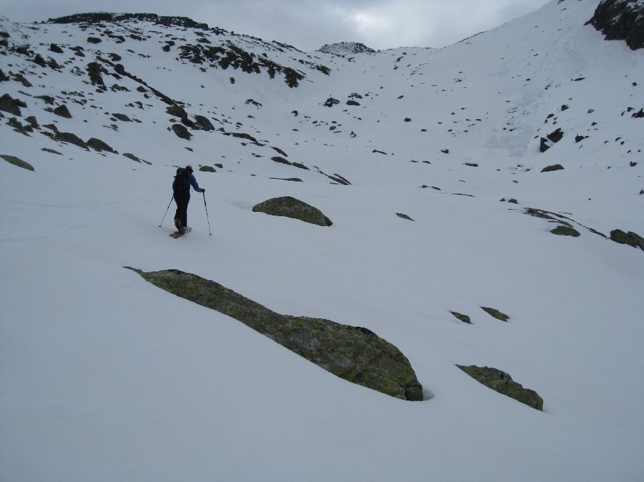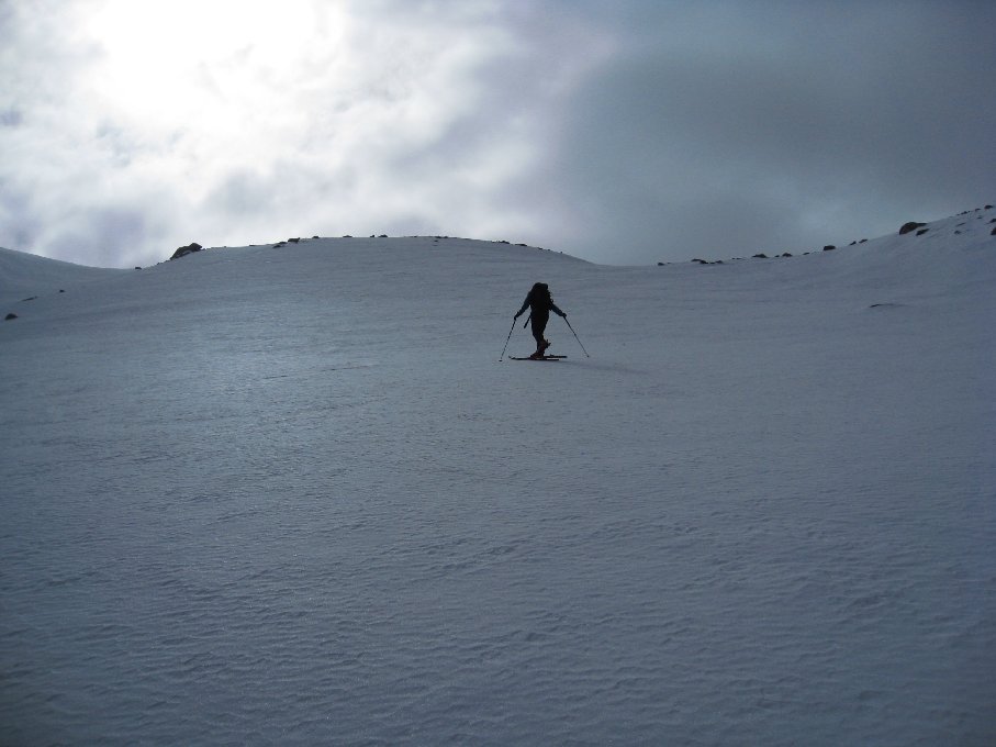 Auf der Forststrasse zur Drisslalm liegt noch etwas Schnee, zu Fuß kein Problem, für (potentielle) Radler eher lästig. Der Weg von der Drisslalm zur Wildkaralm ist recht matschig und im oberen Bereich muss man noch einige kleine Schneefelder queren. Ab dem Waldrand beginnt die geschlossene Schneedecke (~1900m). Zuerst 200-300 Hm grundloser Sumpf, in dem man schon beim Aufstieg durchbrach. Danach aber sehr gute Verhältnisse und ohne Harscheisen bis zum Skidepot. Leider hat sich die Sonne immer nur sehr kurz blicken lassen und damit hat es auch kaum aufgefirnt. Abfahrt war dementsprechend zuerst recht hart (aber nicht ruppig) und dann Krampf im Sulzschnee