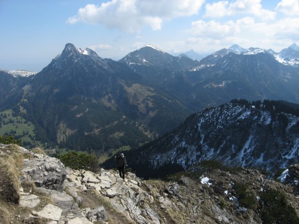 Ausgangspunkt: P-West in Tannheim nordseitig der Bundesstraße (gebührenpflichtig € 3,-/Tag). Für den Aufstieg braucht man keine Beschreibung. Man geht auf der Teerstraße kurz Richtung Norden zum Ortsteil Berg und dann der Beschilderung nach (eindeutiger Weg) bis zum Gipfel.